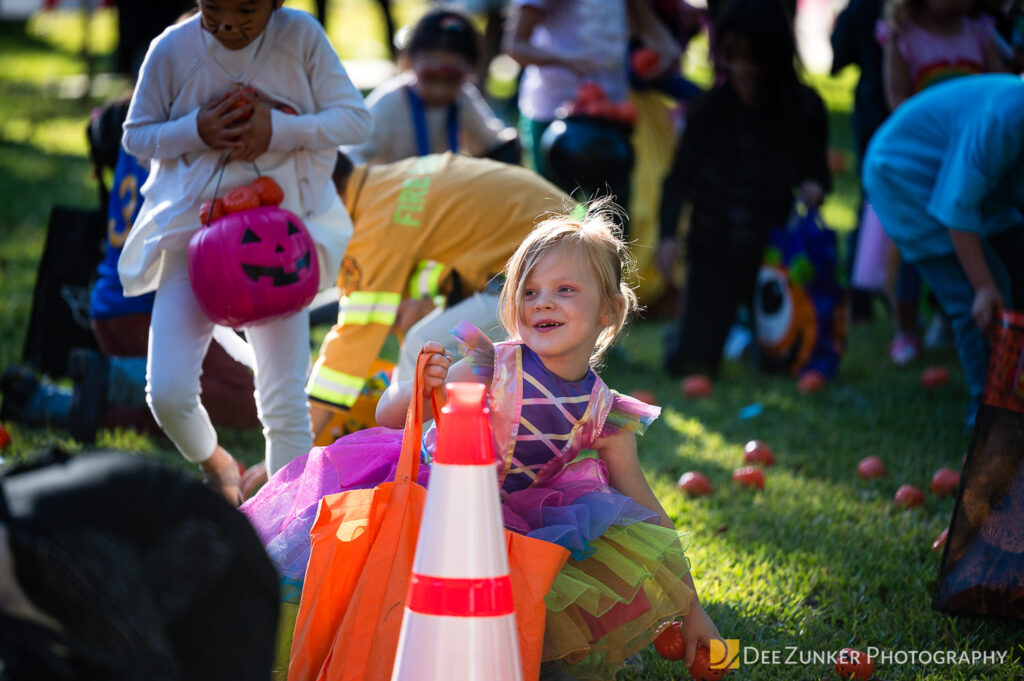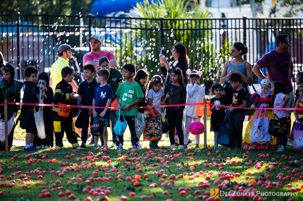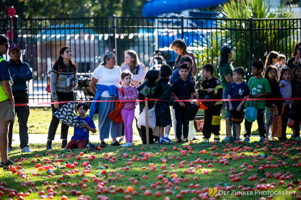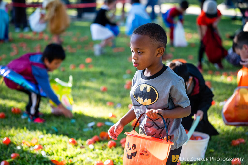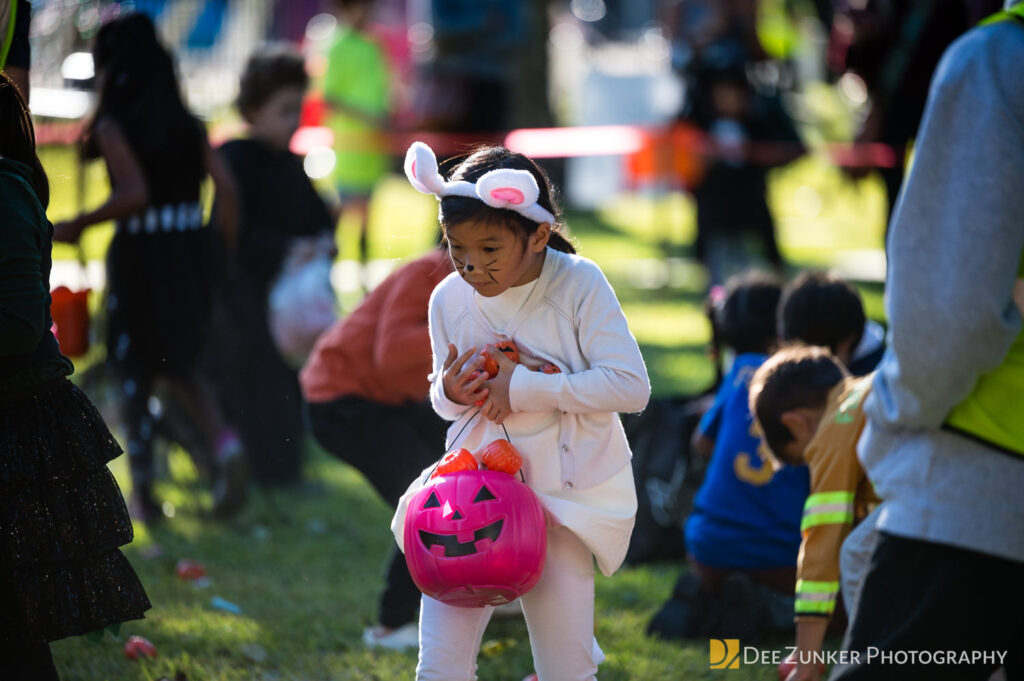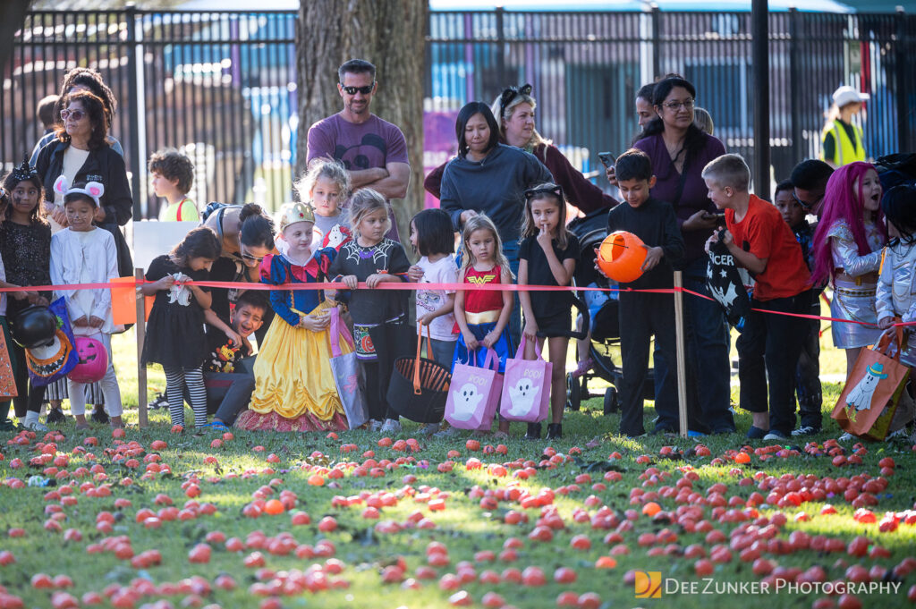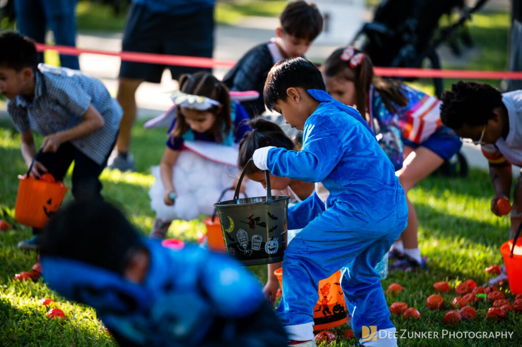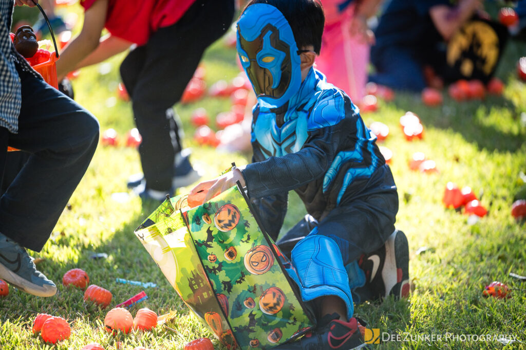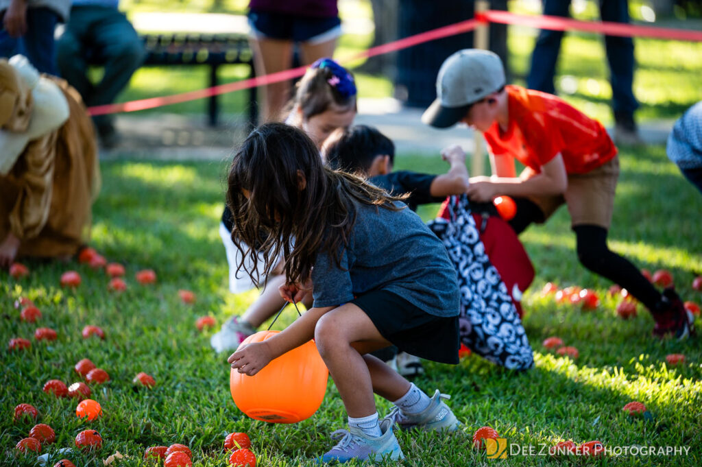 Children ages 10 and under searched for pumpkins filled with candy and prizes in age-appropriate groups, while families enjoyed a DJ, face painting, playground activities, and bouncy inflatable throughout the afternoon.