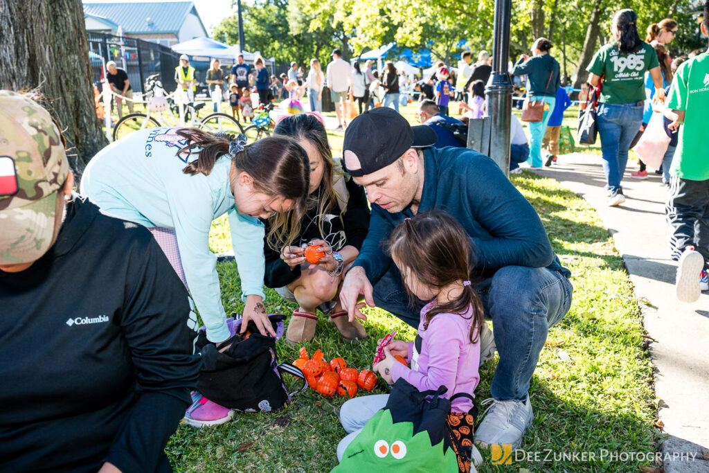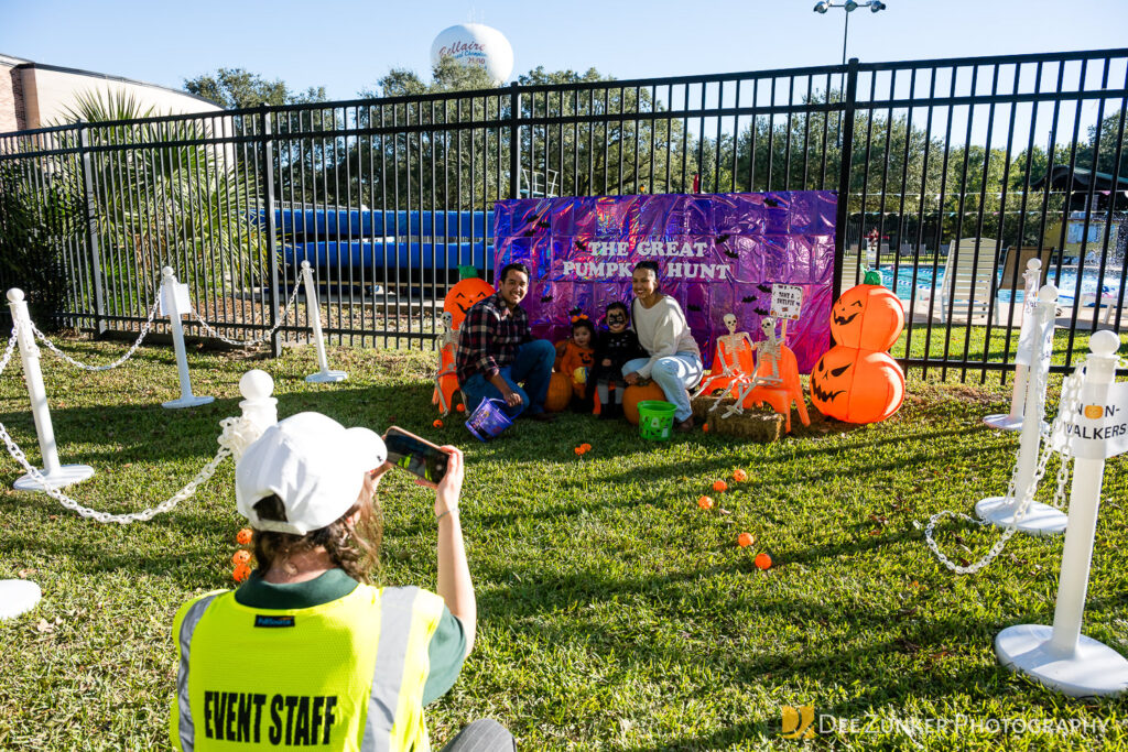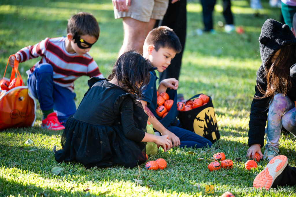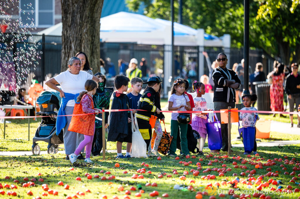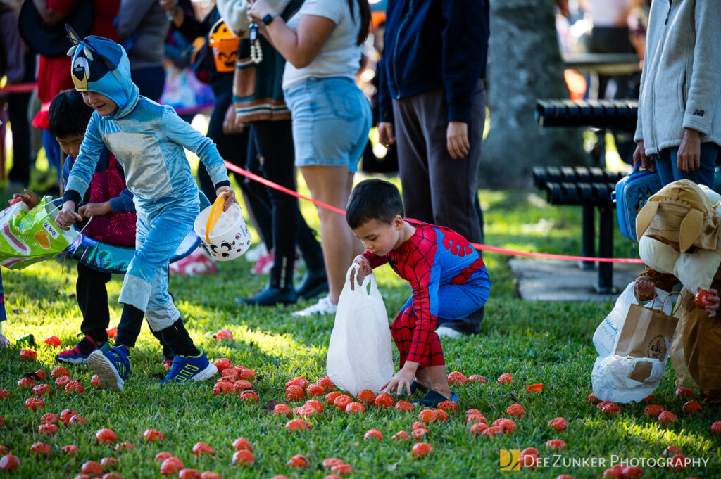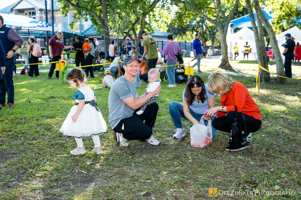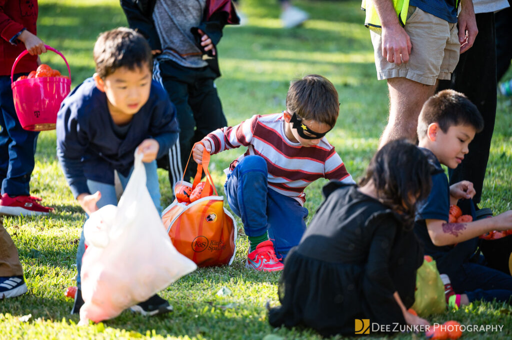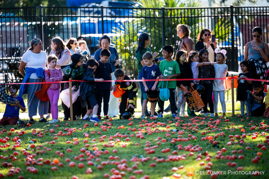 Children ages 10 and under searched for pumpkins filled with candy and prizes in age-appropriate groups, while families enjoyed a DJ, face painting, playground activities, and bouncy inflatable throughout the afternoon.
