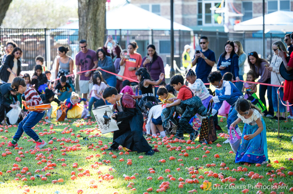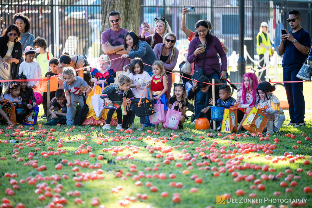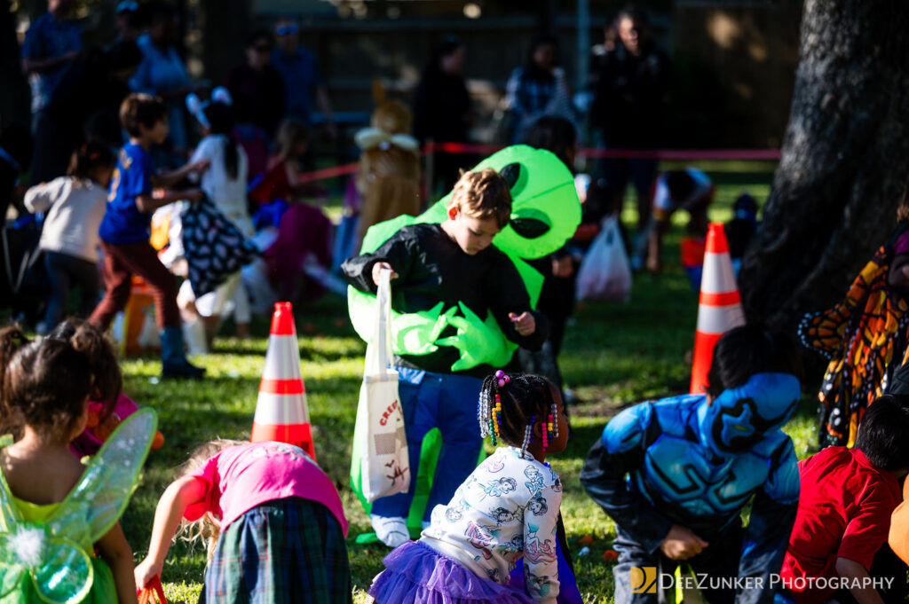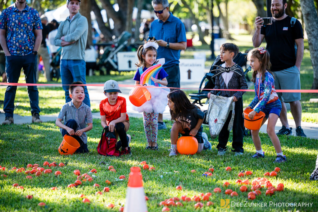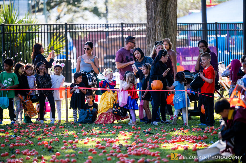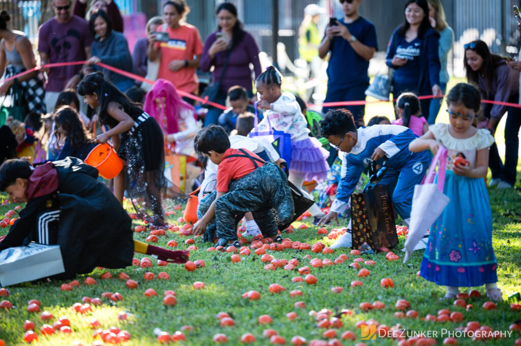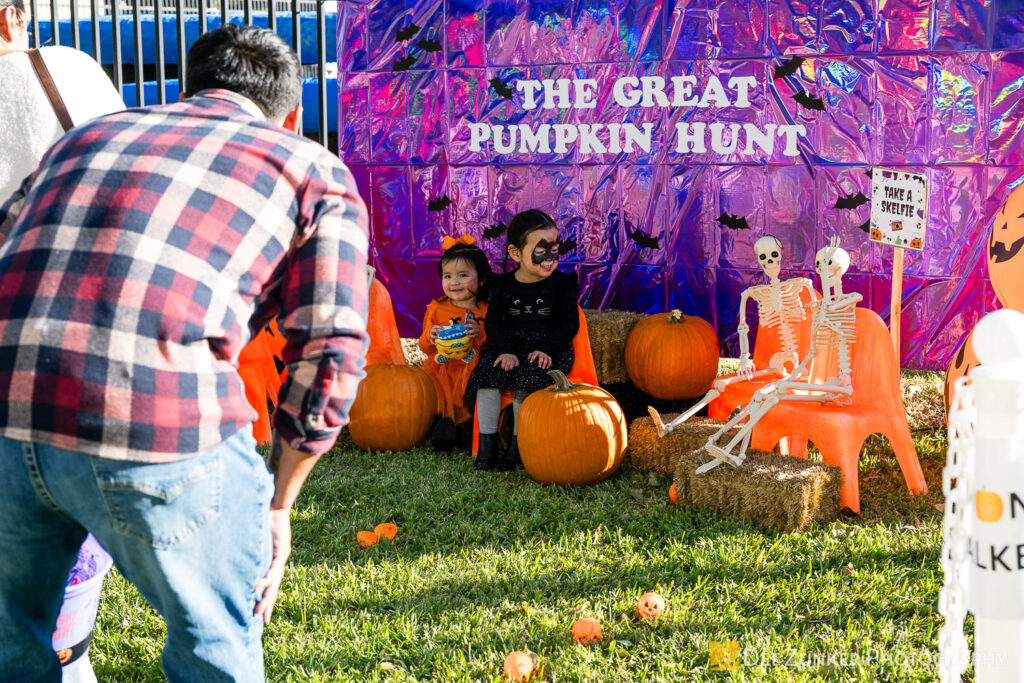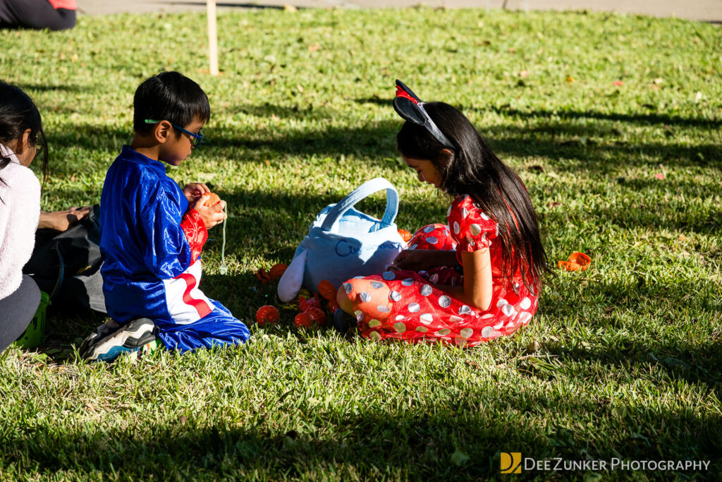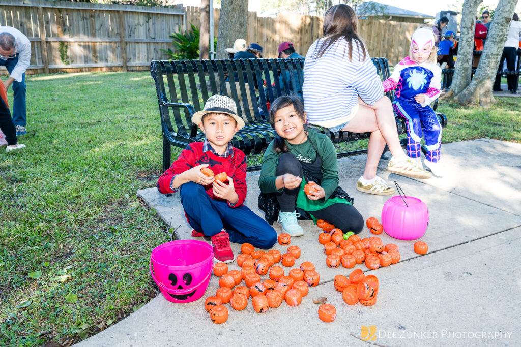 Children ages 10 and under searched for pumpkins filled with candy and prizes in age-appropriate groups, while families enjoyed a DJ, face painting, playground activities, and bouncy inflatable throughout the afternoon.