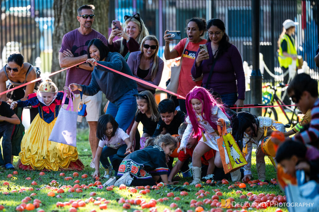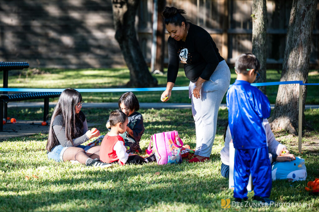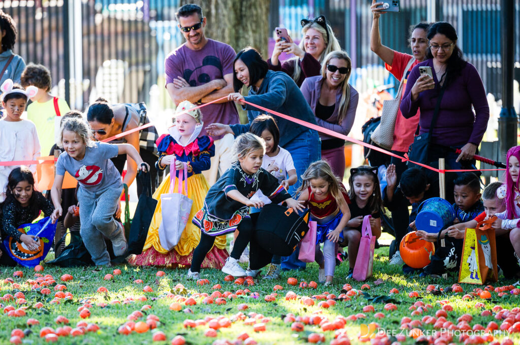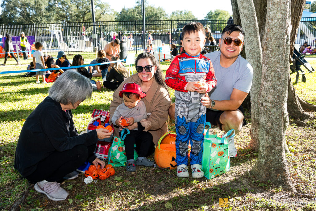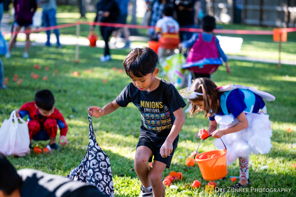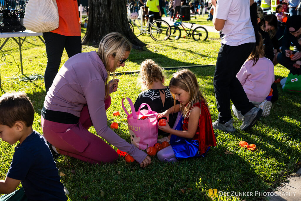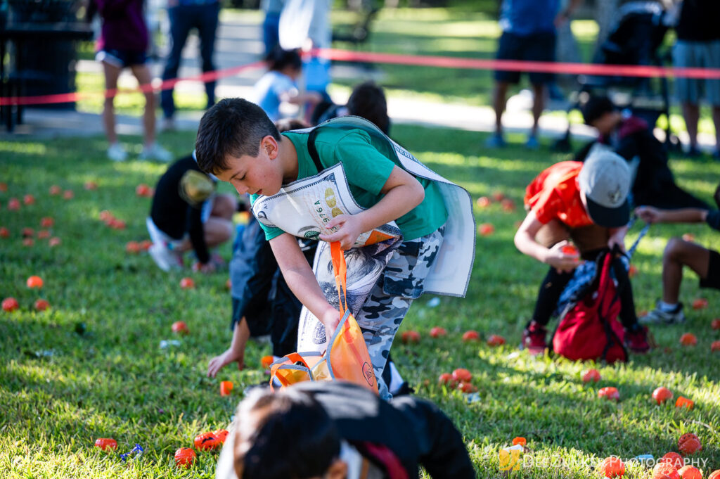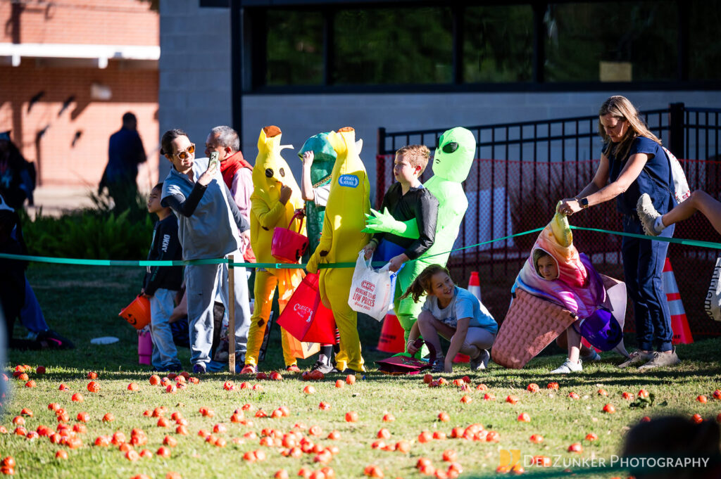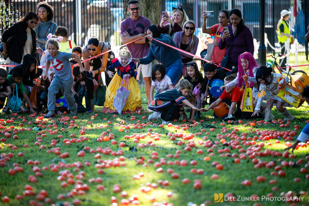 Children ages 10 and under searched for pumpkins filled with candy and prizes in age-appropriate groups, while families enjoyed a DJ, face painting, playground activities, and bouncy inflatable throughout the afternoon.