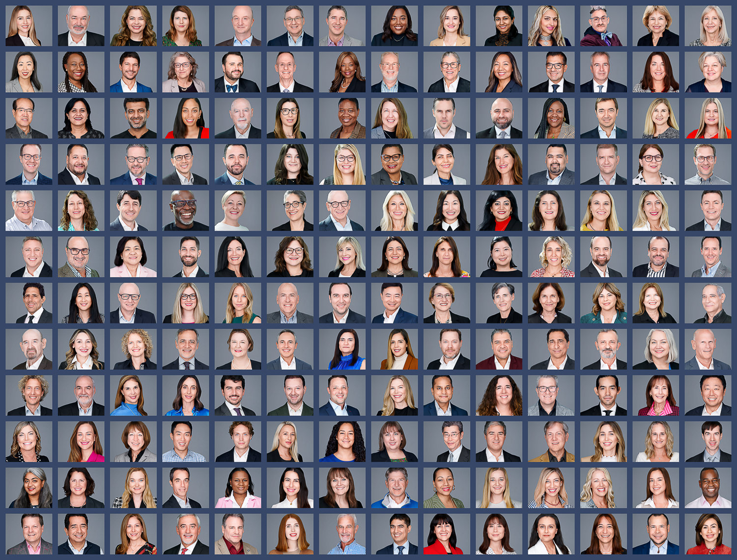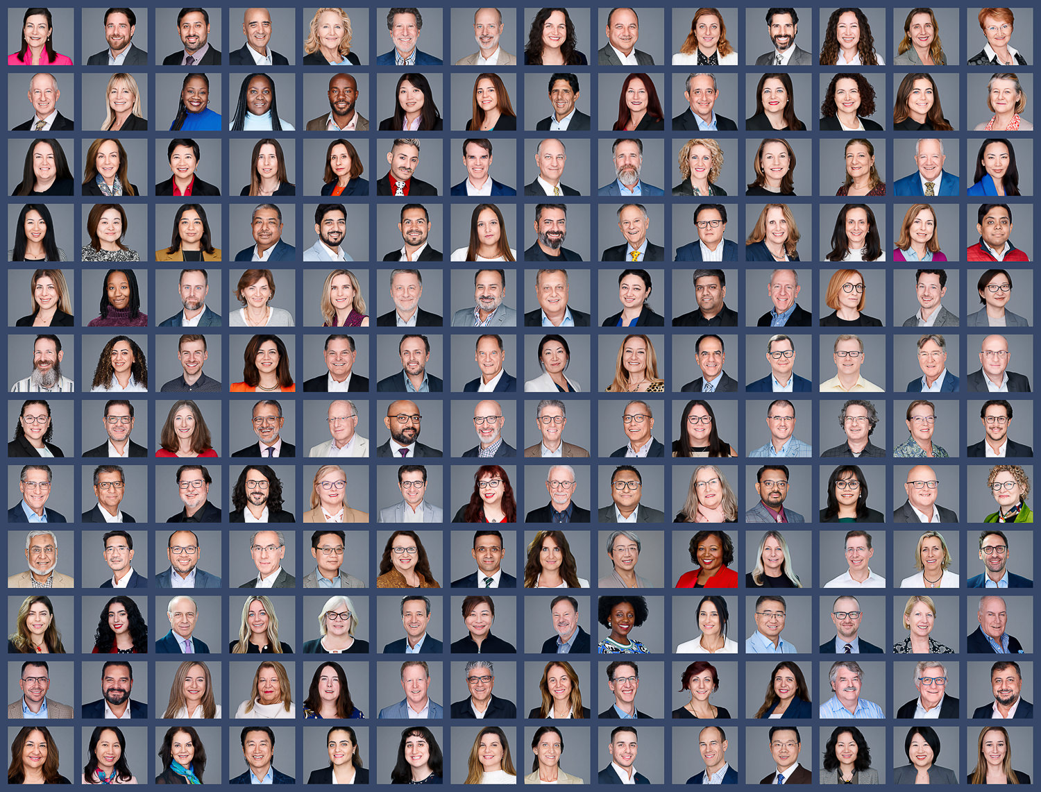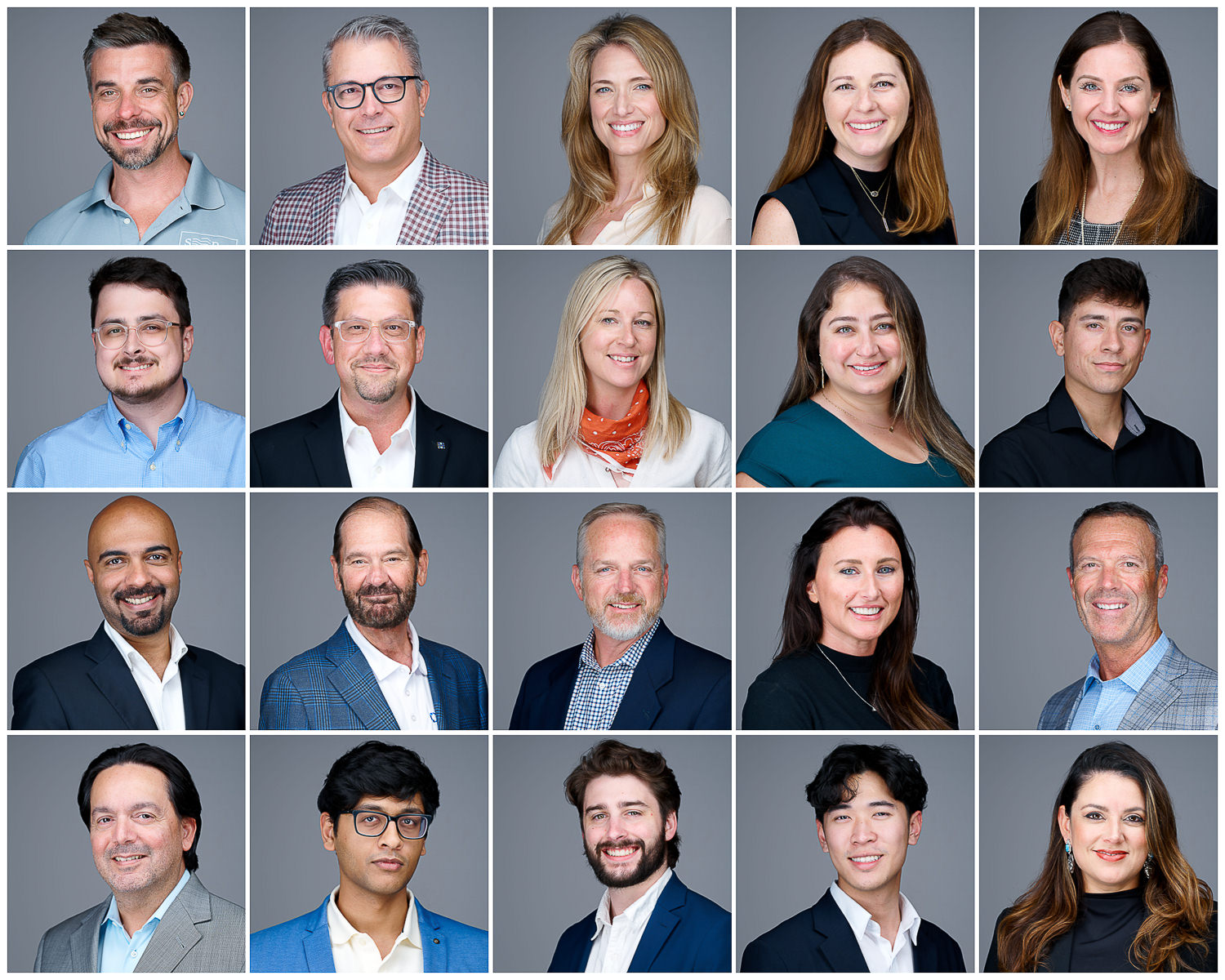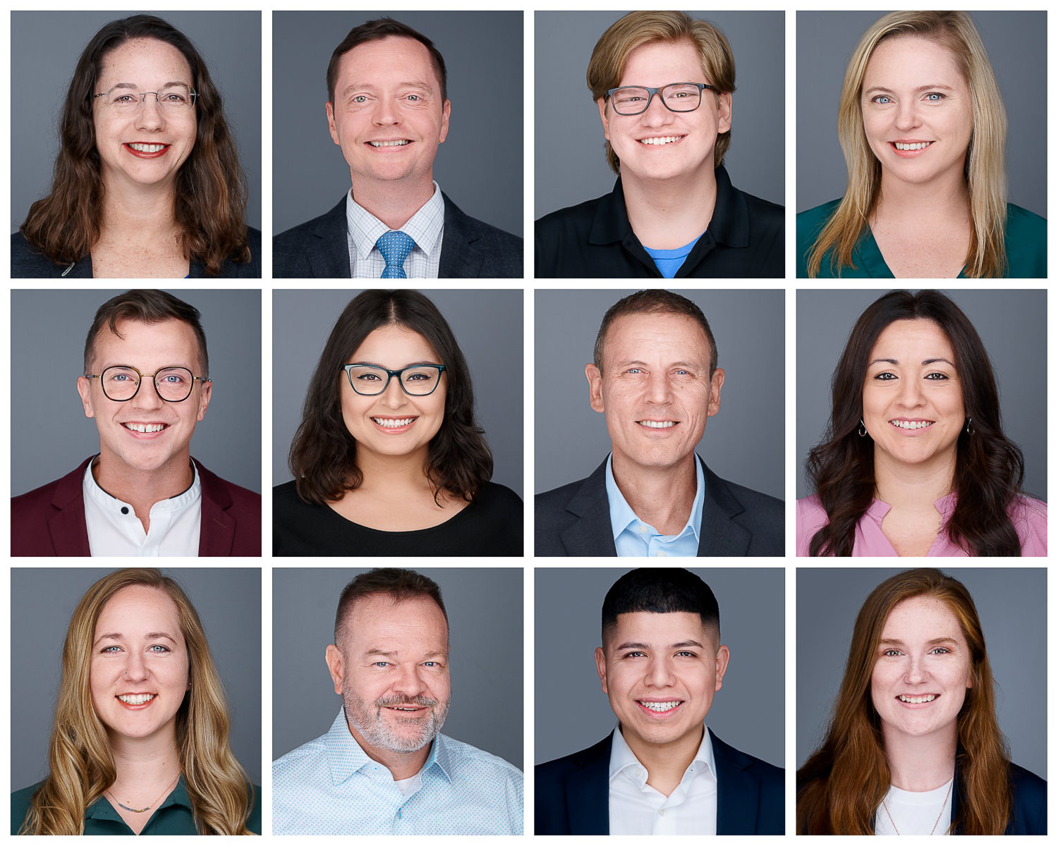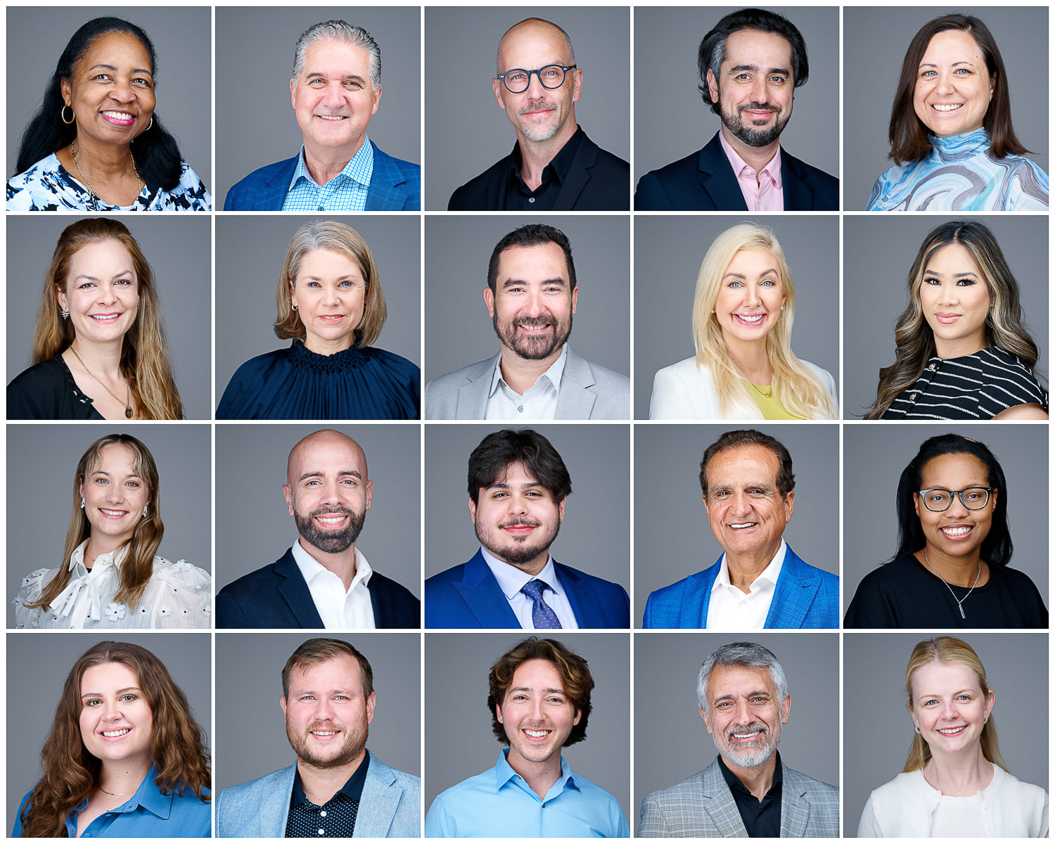 For businesses, consistency is key. These examples demonstrate how we maintain uniform lighting, cropping, and background styling across an entire team, whether we photograph 5 people or 500. We bring the studio to your office or host your team at our facility to create a cohesive look for your “About Us” page and company directory.